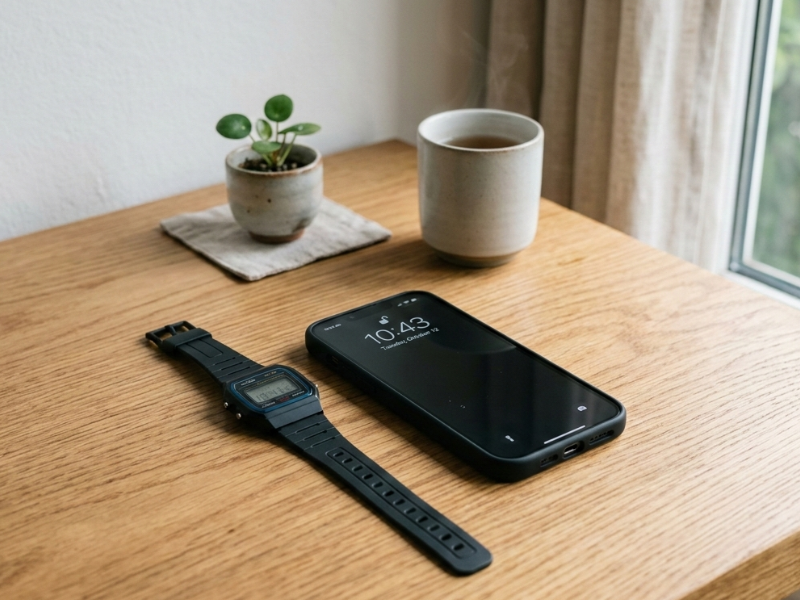 腕時計なら、手首をちらっと見るだけで0.5秒以内に時刻確認が完了します。この差は小さいようで、日常の快適さに大きく影響します。「時間を見るためだけにスマホを出す」という動作が不要になるだけで、1日の動きがスムーズになるのです。